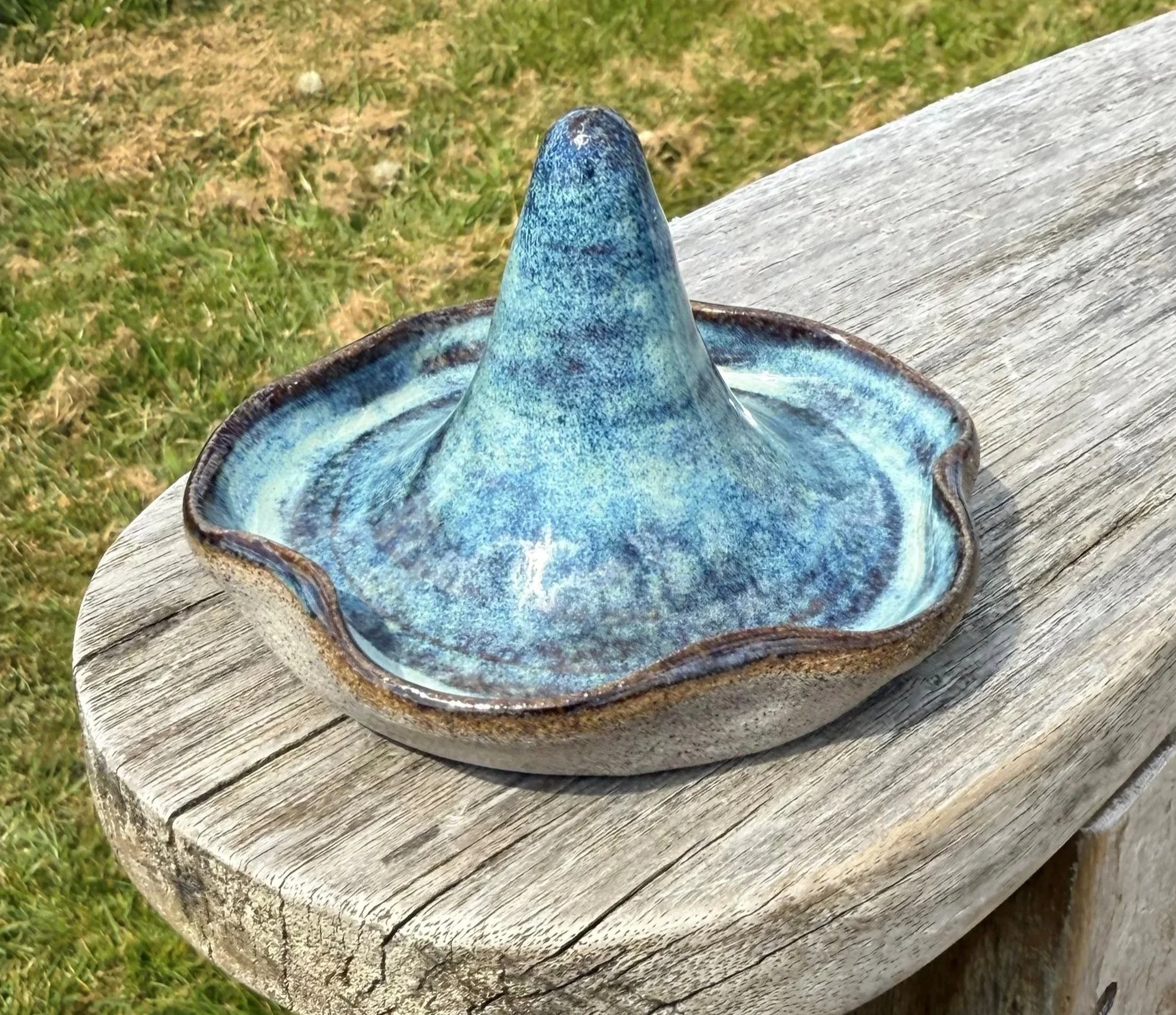 Hand thrown “thumb” cup … a cup with no handle but an indentation for your thumb. So tactile!